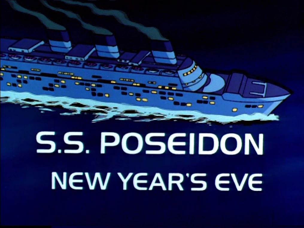 - This cold-open is a parody of the 1972 disaster film The Poseidon Adventure.